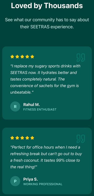 Premium instant coconut water powder in a pocket-sized sachet. Just add water for anauthentic tropical experience anywhere